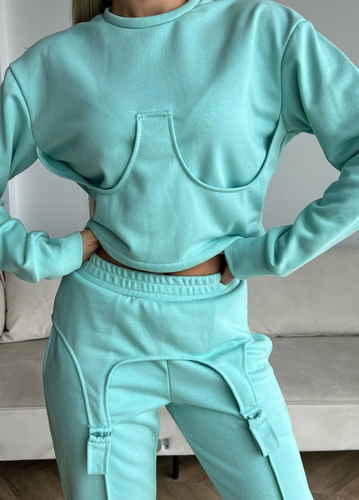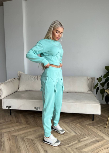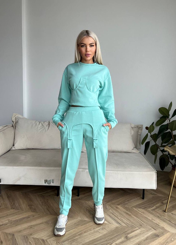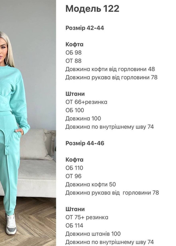 Демісезонний стильний костюм Тканина: петля турецька Розміри: 42-44,44-46 Колори: бірюза, моко.