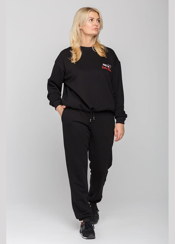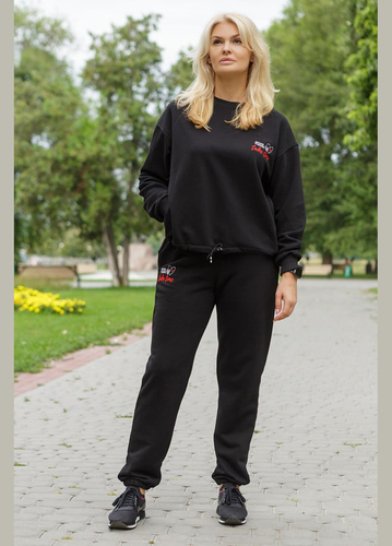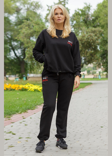 Худі прямого силуету з округлою горловиною, спущеною лінією плеча, внизу стягується на шнурок, з вишивкою. Штани-джогери високої посадки, пояс на резинці, глибокі кишені, вишивка. Довжина худі 60 см. Довжина штанів по зовнішньому шву 103 см, по внутрішньому – 80 см. На моделі - розмір 48 Зріст моделі - 170 см Рекомендації щодо догляду за виробом: делікатне прання за 30 °C Розмір 48: Довжина 62 см; Довжина рукава 75 см; Обхват стегон 110 см; Обхват грудей 124 см;