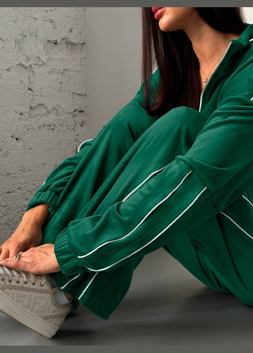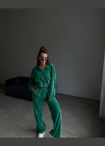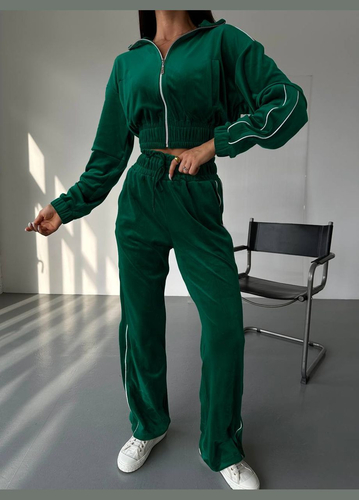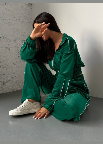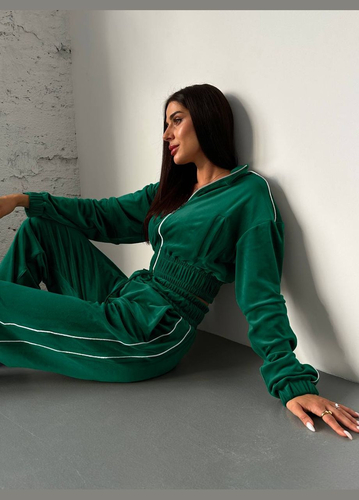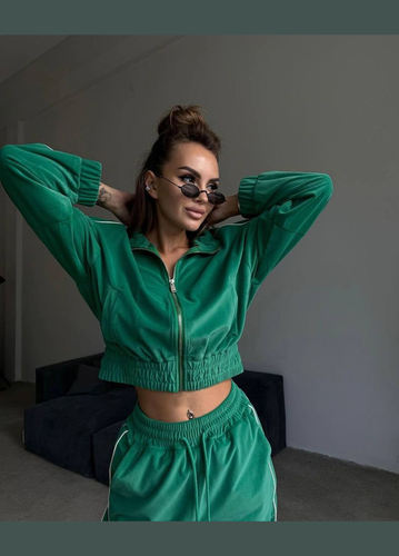 Маємо відео, питайте у менеджера Матеріал: велюр плюш Колір: чорний, рожевий, шоколад, зелений Розміри: S-M; M-L Велюровий костюм найкращій варіант на цю осіньПриємна плюшева тканина, стильний крійКофта вкорочена, на резинціІдеально підкреслює фігуру Параметри на S-M: ОГ-90-94 ОТ-60-66 Довжина рукава-65 Довжина кофти-44 ОБ-100-110 Довжина зовнішнього шва-107 Довжина внутрішнього шва-80 M-L +4 см до всіх обʼємів